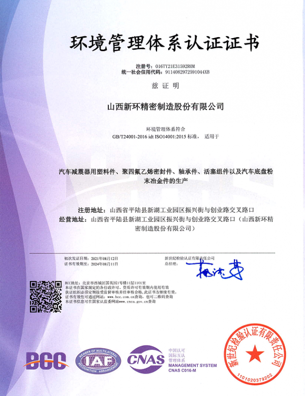 山西新環(huán)精密制造股份有限公司創(chuàng)建于1992年,是以研發(fā)、生產(chǎn)、銷售粉末冶金類、工程塑料類、橡膠制品類、氟塑類產(chǎn)品為主的高新技術(shù)企業(yè)。位于交通發(fā)達(dá)的山西省平陸縣城,距離三門峽市6 km,毗鄰隴海線,高鐵直達(dá)北京、上海、成都均為5小時(shí)左右,到達(dá)鄭州、西安皆為1小時(shí),距離運(yùn)城市機(jī)場35km。旗下子公司有:山西新環(huán)粉末冶金有限公司、山西新環(huán)科技有限公司、寧波新環(huán)氟塑料制品有限公司、寧波新環(huán)氟塑料制品有限公司軸業(yè)分公司、新勝達(dá)氟塑制品有限公司?,F(xiàn)有高、精、尖設(shè)備120余臺套,固定資產(chǎn)總額1.8億元,年銷售額2.6億元。